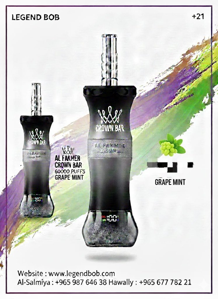 | نكهة | BLACKCURRANT, BLUE RAZZ BLAST, APPLE, Grape, GRAPE MINT, Mango, MINT, MIXED BERRY, Watermelon |